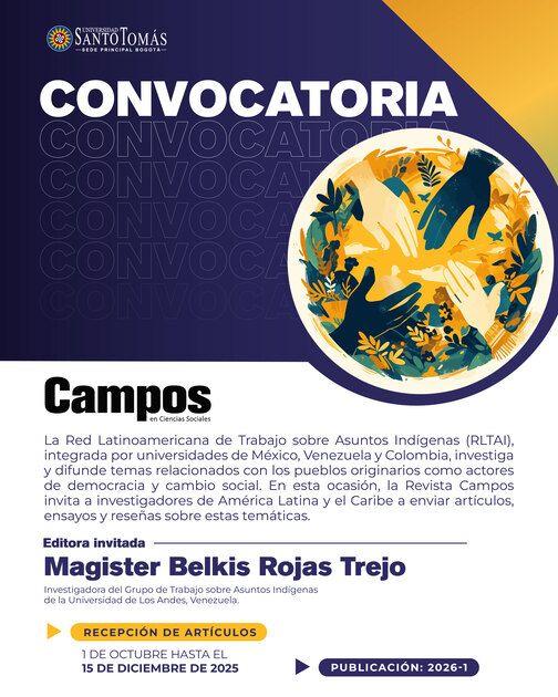 La Red Latinoamericana de Trabajo sobre Asuntos Indígenas (RLTAI), conformada por investigadores del Doctorado en Estudios Regionales, Universidad de Chiapas, México, El Grupo de Trabajo sobre Asuntos Indígenas de La Universidad de Los Andes, Venezuela y el Grupo de Investigación Comunicación, Paz y Conflicto de la Universidad de Santo Tomas, Bogotá, Colombia; investiga, reflexiona, debate, promociona y difunde temas diversos que atañen a la vida presente y pasada de los pueblos originarios como sujetos activos de democracia, con modelos de vida, visiones, filosofías y propuestas de participación y desarrollo que aportan novedosas y alternativas formas de organización y cambio social tanto en sus comunidades como en la sociedad mayoritaria. En esta ocasión, la Revista Campos convoca a los investigadores de América Latina y El Caribe a presentar artículos resultados de investigación, artículos de reflexión, reseñas de libros y ensayos sobre estas temáticas.