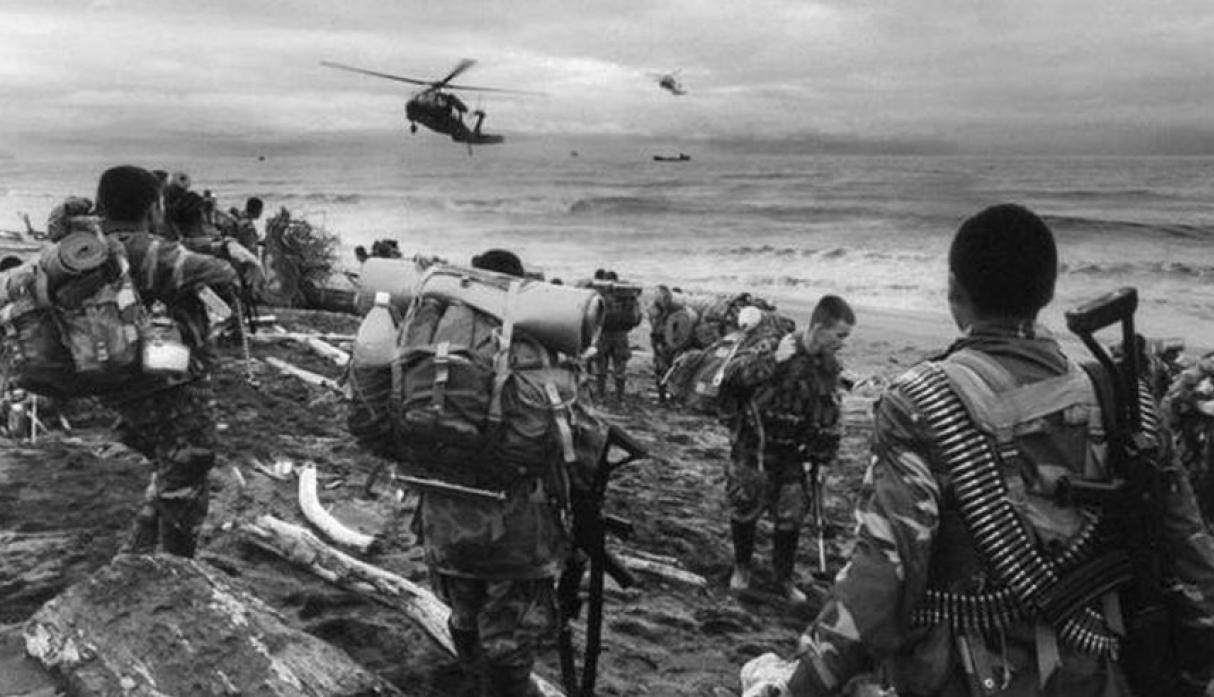 En la fotografía “El desembarco” se ve, por ejemplo, todo el aparataje de las operaciones militares. Para el año 2017 el gasto militar en Colombia fue del 3.1 % del PIB, equivalentes a USD$ 9.713 millones, según informe del Instituto Internacional de Estudios para la Paz de Estocolmo (Sipri), lo que ubica a Colombia como la nación suramericana que más dinero invierte en el sector militar. Esto, por supuesto, contrasta con los niveles de desigualdad y pobreza que para entre los años 2015 y 2016 fueron de un 28 % de la población en promedio, según informes de la Cepal. La fotografía evidencia estas contradicciones, las hace públicas y testimonia no solo el horror de la guerra, sino también el horror del olvido, de la negligencia estatal, de las contradicciones de los actores armados y, por qué no, de la inmovilidad de amplios sectores de la sociedad civil. La fotografía: “aporta a la de-construcción de un orden simbólico instituido alrededor de la guerra y de quienes la hacen, con imágenes e historias de otros espacios construidos por hombres y mujeres que hacen de la risa, la palabra, el trabajo y la vida, esperanza y creación” (Roca, 2001).