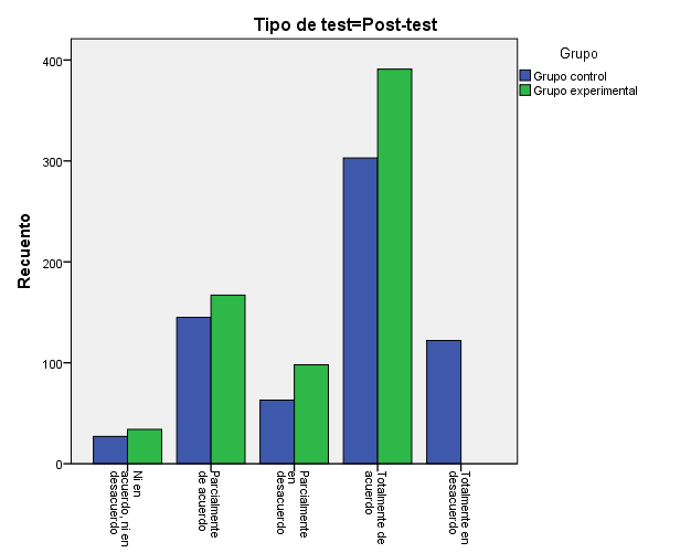 En la figura 2 se puede observar el nivel de frecuencias del grupo experimental y control en la prueba final denominada postest.
