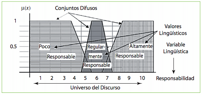 La lógica difusa es un método de procesamiento que se asemeja al razonamiento humano, que difiere de la lógica matemática tradicional que un ordenador puede comprender (0.1). Esta toma la lógica del razonamiento incompleto con base en la teoría de conjuntos difusos que, en su universo, presenta un abanico de posibilidades entre el sí y no (0.1). En este conjunto de universo S, a cada elemento X se le asigna un valor entre 0 y 1 (ejemplo 0.5), definido por expertos, como muestra la figura 1.