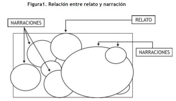 El término "realmente" puede indicar en el planteamiento del autor una relación de verdad o una de verosimilitud. En cualquiera de los casos, el nivel en el que se ubica el relato es más amplio que el de la narración y va más allá de la delimitación subjetiva de quien narra. Esto teniendo en cuenta que la narración no se ubica exclusivamente en el sujeto, como lo menciona Gergen (1994), por no ser una construcción puramente individual, pues tiene un impulso y una relación social para ser. En ese sentido, vivimos en los relatos y damos cuenta de esas vivencias a través de las narraciones que construimos. Esto se puede resumir en la Figura 1.