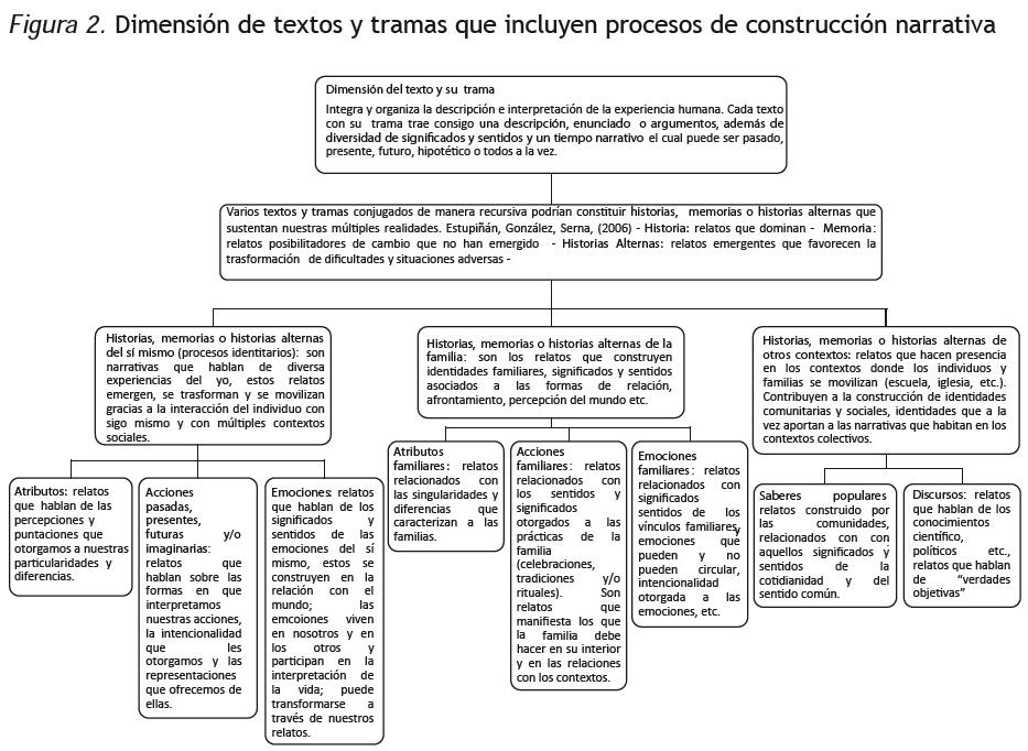 otros argumentos, que pueden validar otras narrativas acerca de sí mismo y de la propia experiencia vital hasta el momento marginalizadas o invisibilizadas por el relato dominante o simplemente no estructuradas y por tanto no disponibles para proveer sentidos alternos a la experiencia y acción (Estupiñán, González y Serna, 2006, p. 67).