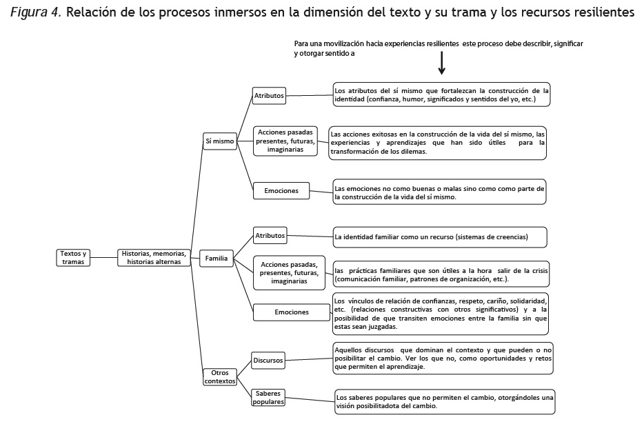 De acuerdo con lo anterior, se entiende además que la resiliencia, hace parte de un entramado de acontecimientos conversacionales y relacionales, los cuales deben ser entretejidos en ciertos escenarios, bajo ciertas circunstancias para que emerjan relatos resilientes.