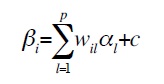 donde p expresa el número de componentes considerados, αl la dificultad del componente l, wil la frecuencia con la que ese componente está presente en el ítem i, y c es una constante de escalamiento. Los αl se denominan parámetros básicos, y representan la contribución a la dificultad de los ítems, si son números positivos, o a la facilidad de aquellos, si son negativos.