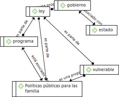En cuanto a la segunda categoría, políticas públicas, las familias no tienen conocimiento amplio sobre qué son las políticas públicas para las familias en Bogotá ni cómo funcionan. Sin embargo, como se observa en la Figura 2, las relacionan con programas que provee el Estado o el gobierno en turno, las cuales cobijan especialmente a personas que más lo necesitan, están en estado de vulnerabilidad social y económica y/o que están buscando un beneficio. Asimismo, menciona que estas políticas se traducen en leyes las cuales terminan siendo una forma de comunicación o articulación entre el gobierno y la comunidad.