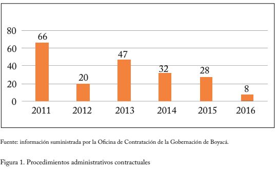 Según datos suministrados por la Subdirección de Contratación de la actual administración departamental, la cantidad de procesos contractuales iniciados a los contratos suscritos en el período enero de 2011 a junio de 2016, se observan en la Figura 1.